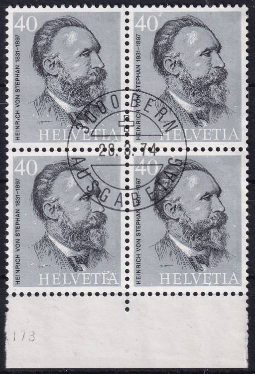 1974, Švýcarsko,1025d, 100 let Světové poštovní unie (UPU): Heinrich von Stephan ⊙ ⊞ o D