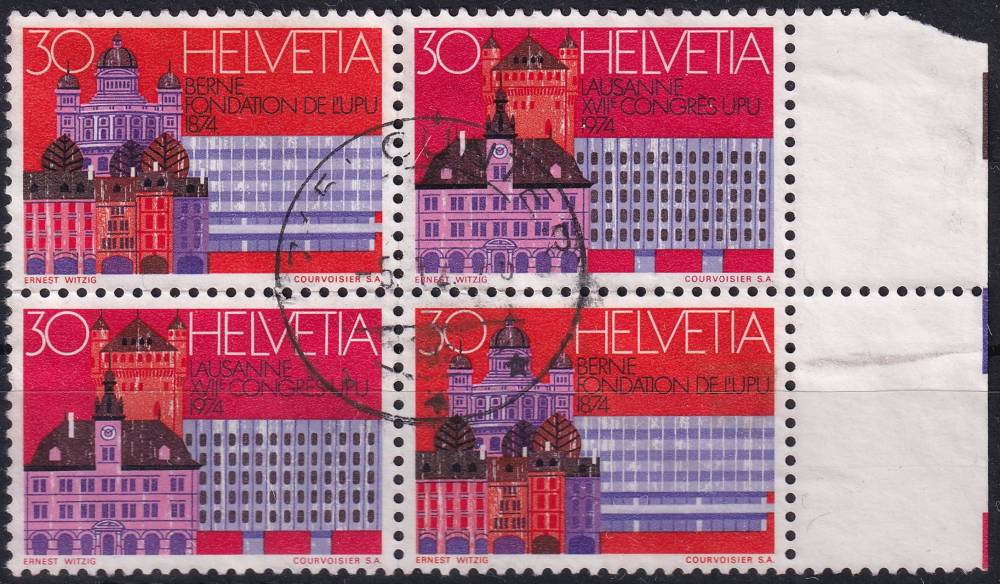1974, Švýcarsko,1027/1028St, Světový poštovní kongres, Lausenne ⊙ ⊞ o P