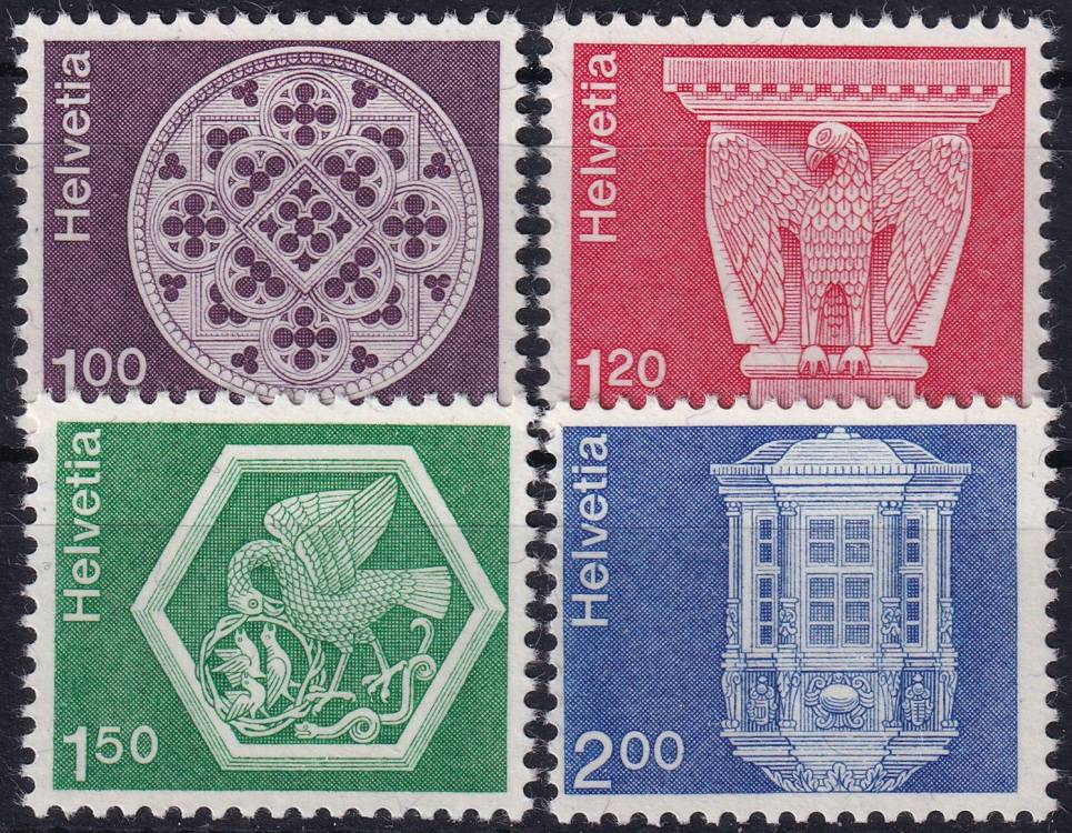 1974, Švýcarsko, 1035/1038v, Výplatní známky: Architektura a umělecká řemesla (II) ✶✶