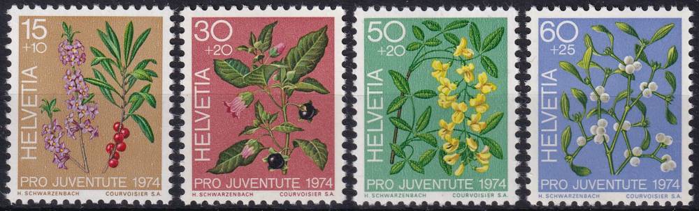 1974, Švýcarsko, 1042/1045, „Pro Juventute“: Jedovaté lesní rostliny ✶✶