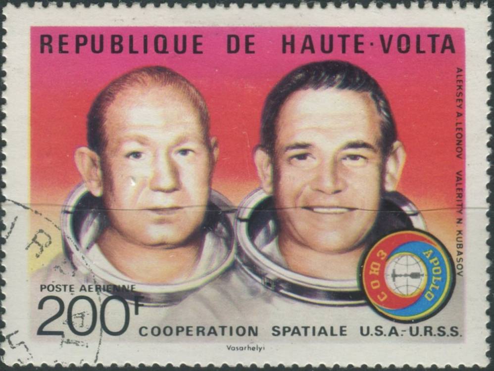 1975, Horní Volta, 0584, Americko-sovětský vesmírný let Apollo-Sojuz: Leonov, Kubasov ⊙