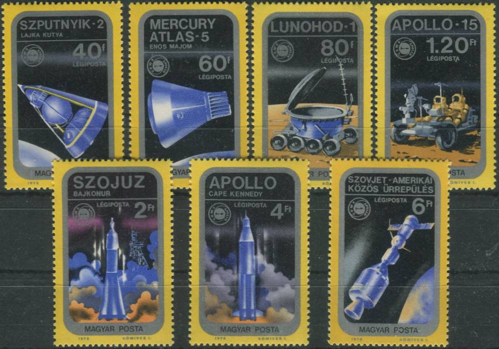 1975, Maďarsko, 3046/3052A, Letecké známky: Americko-sovětská vesmírná spolupráce Apollo-Sojuz ∗∗