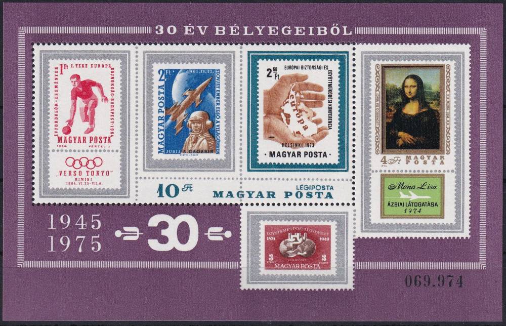 1975, Maďarsko, A114A, Letecký aršík: Úspěchy maďarských poštovních známek za posledních 30 let ✶✶