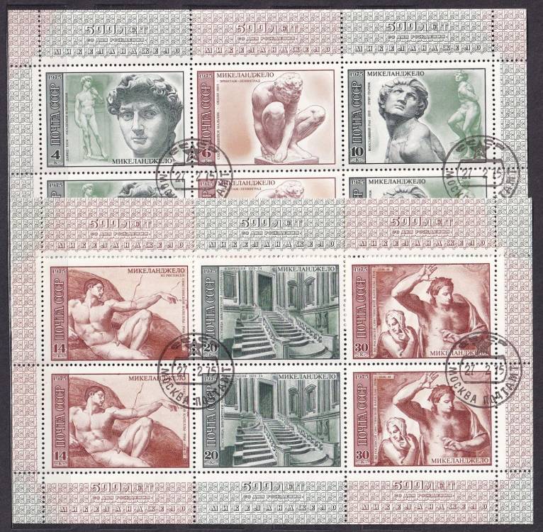1975, SSSR, PL4329/4334, 500. výročí narození Michelangela ⊙