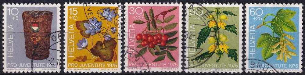 1975, Švýcarsko, 1062/1066, „Pro Juventute“: Den poštovní známky - Okrasné lesní plody ⊙