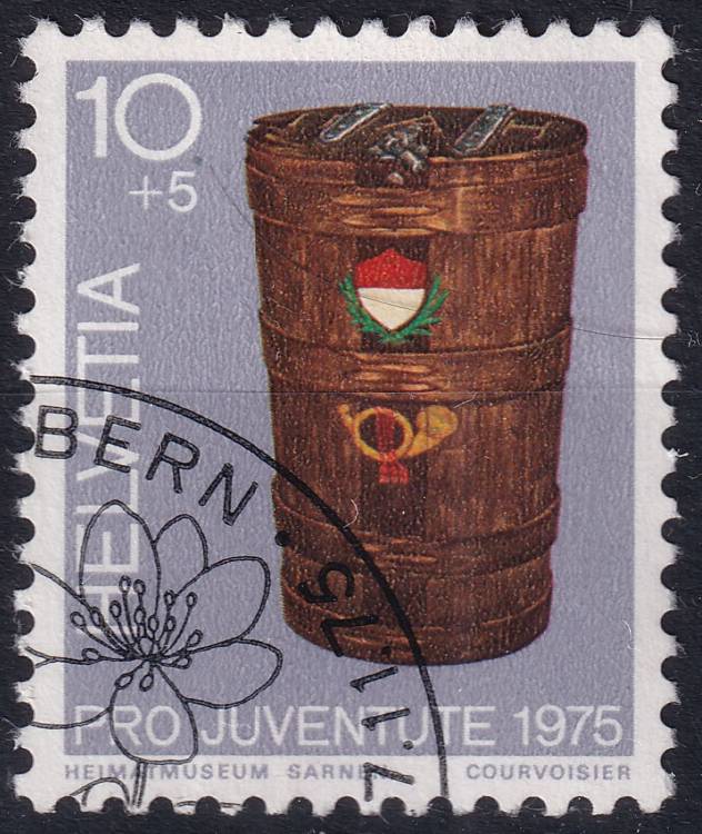 1975, Švýcarsko, 1062, „Pro Juventute“: Den poštovní známky - Historická poštovní brašna ⊙