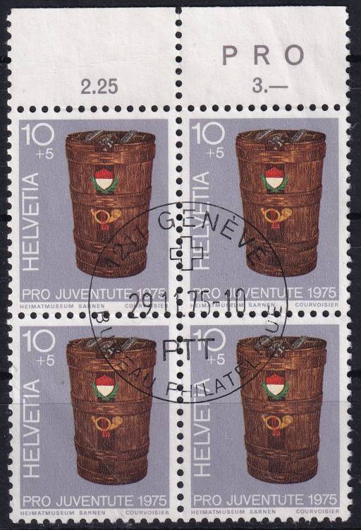 1975, Švýcarsko,1062p, "Pro Juventute": Den poštovní známky - Historická poštovní brašna ⊙ ⊞ o H