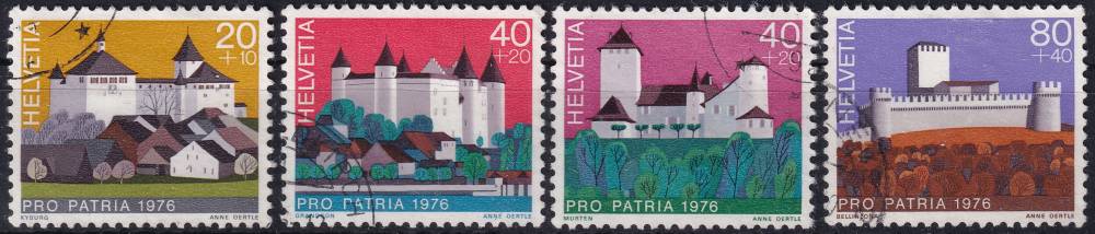 1976, Švýcarsko,1075/1078, „Pro Patria“: Zámky (I) ⊙