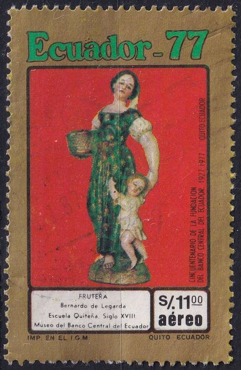 1977, Ekvádor, 1747, Letecká známka: 50 let Ekvádorské centrální banky - Socha od Bernarda de Legardy ⊙