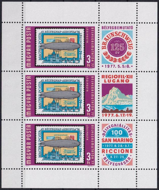 1977, Maďarsko, PL3201A, Letecký: Mezinárodní výstava poštovních známek v Brunšviku, Luganu a San Marinu ✶✶