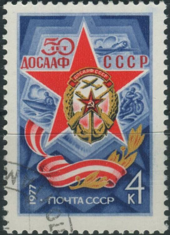 1977, SSSR, 4568, 50 let Dobrovolnické společnosti pro podporu armády, letectva a námořnictva ⊙