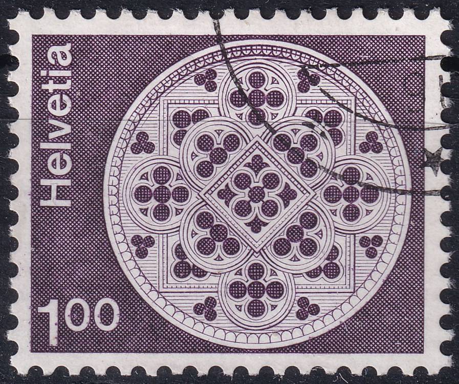 1978, Švýcarsko, 1035w, Výplatní známka: Architektura a umělecká řemesla (II) - Rozeta, katedrála v Lausanne ⊙