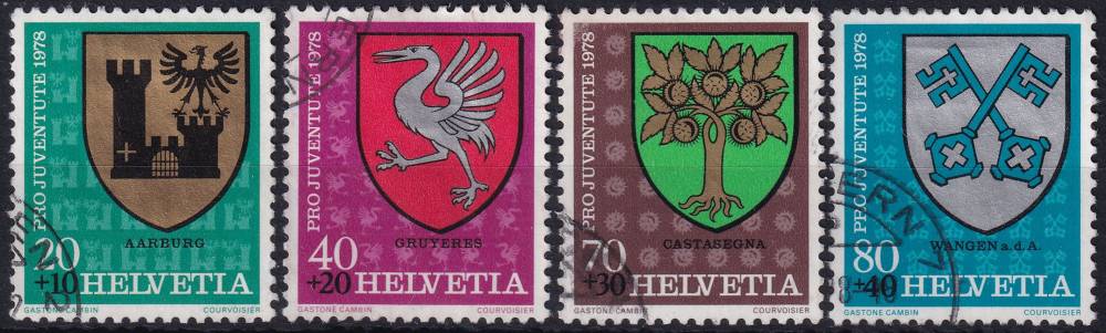 1978, Švýcarsko, 1142/1145, „Pro Juventute“: Obecní znaky ⊙