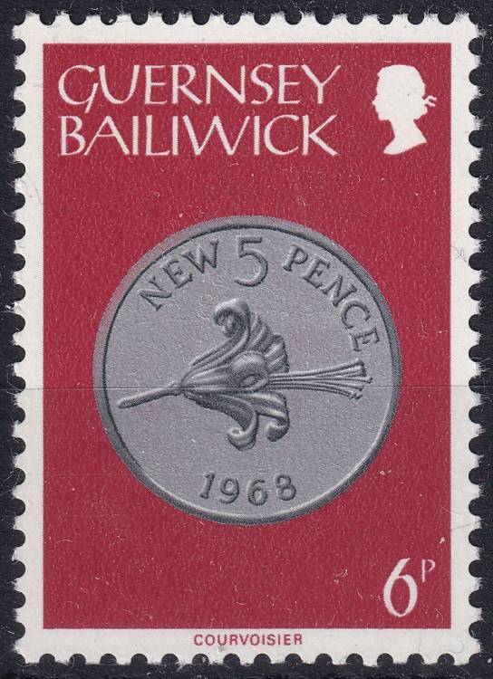 1979, Guernsey, 0178, Výplatní známka: Mince - 5 nových pencí ✶✶