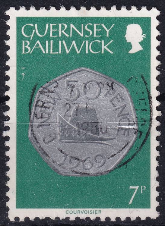 1979, Guernsey, 0179, Výplatní známka: Mince - 50 nových pencí ⊙