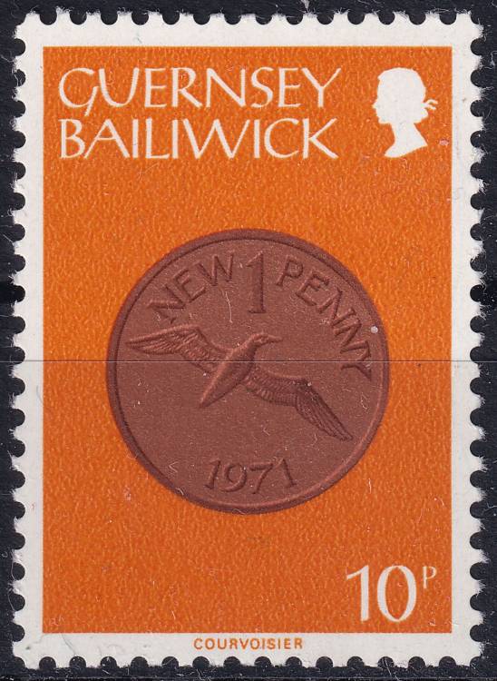 1980, Guernsey, 0199, Výplatní známka: Mince - 1 nová penny ✶✶