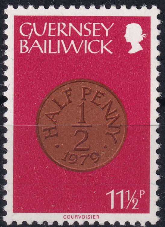 1980, Guernsey, 0200, Výplatní známka: Mince - půl penny ✶✶