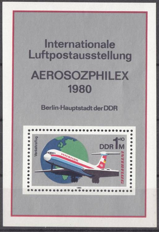 1980, NDR, A059, 25 let INTERFLUG, mezinárodní výstava letecké pošty AEROSOZPHILEX, **