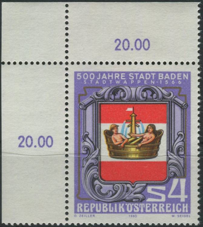 1980, Rakousko, 1631p, 500 let města Badenu ∗∗