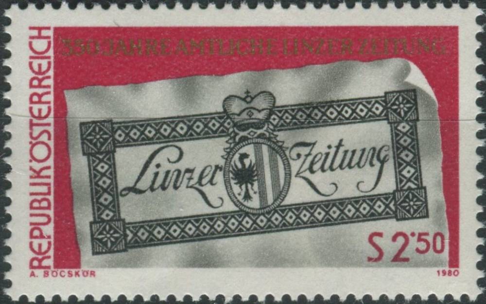 1980, Rakousko, 1657, 350 let Úředních lineckých novin ∗∗