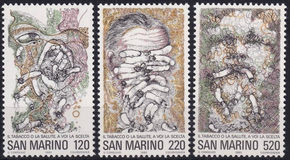1980, San Marino, 1206/1208, Světový den zdraví: Boj proti kouření ✶✶
