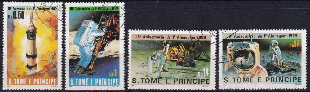 1980, Svatý Tomáš a Princův ostrov, 0646/0649, 10. výročí prvního přistání na Měsíci ⊙
