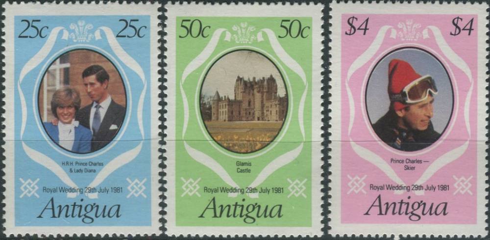 1981, Antigua, 0628/0630A, Svatba Prince Charlese a Lady Diany Spencerové (I) ✶✶