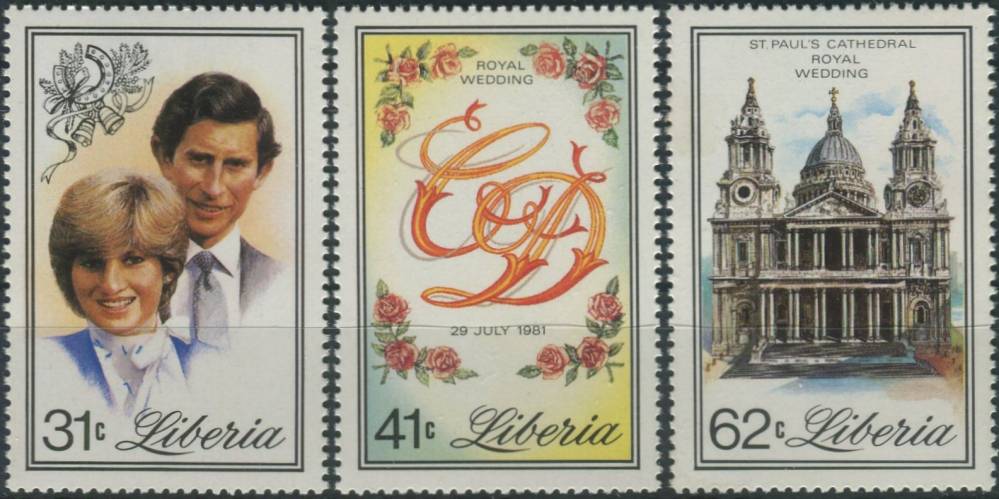 1981, Libérie, 1215/1217A, Svatba prince Charlese a Lady Diany Spencerové ∗∗