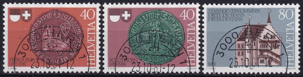 1981, Švýcarsko, 1203/1205, 500 let Freiburgu a Solothurnu ve spříseženství ⊙