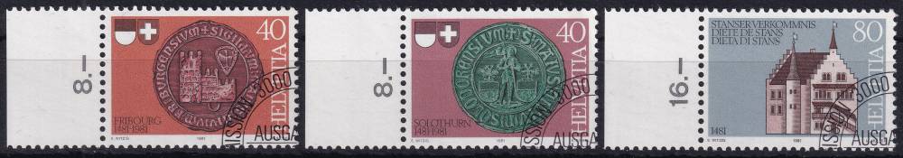 1981, Švýcarsko, 1203/1205p, 500 let Freiburgu a Solothurnu ve spříseženství ⊙ o L