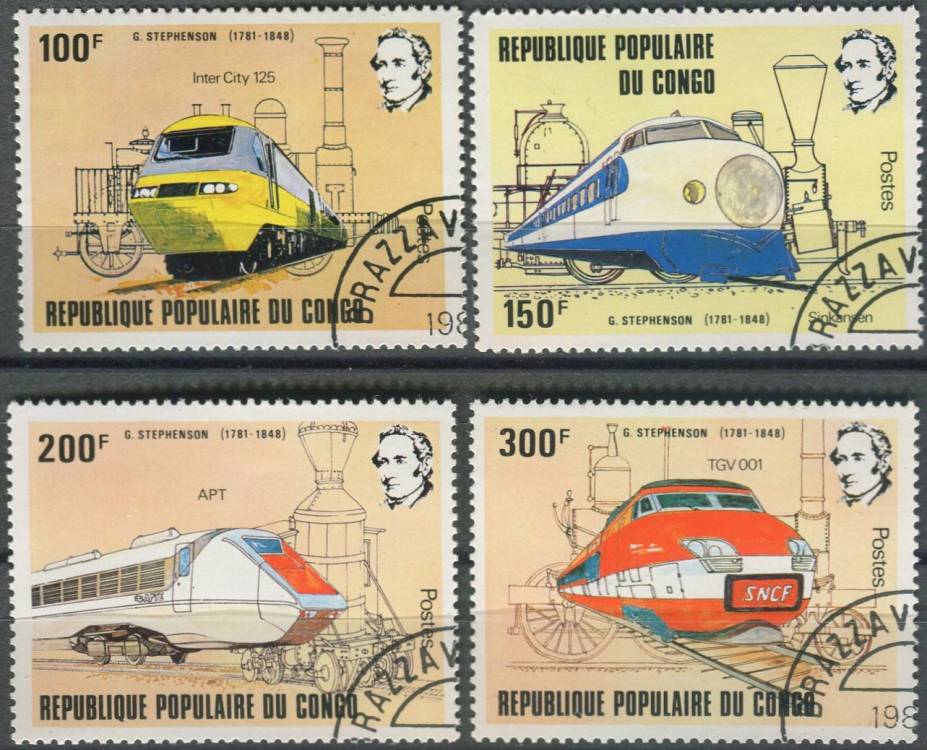 1982, Kongo (Brazzaville), 0855/0858, 200. výročí narození Georga Stephensona (1981): Vlaky ⊙