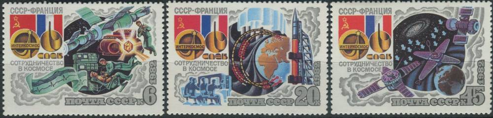 1982, SSSR, 5190/5192, Program Interkosmos: Společný vesmírný let SSSR-Francie ∗∗
