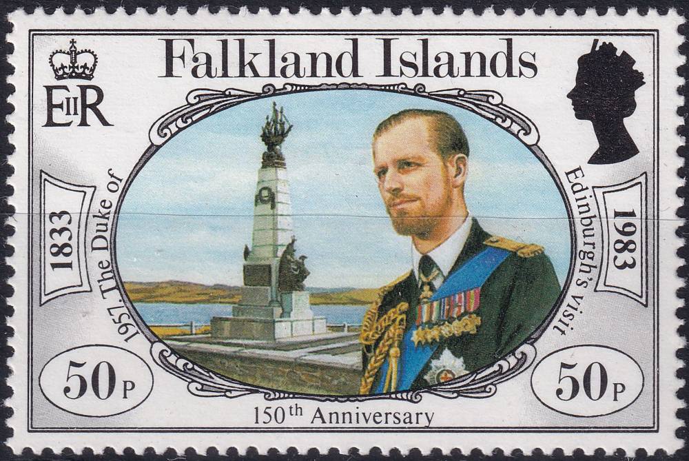 1983, Falklandské ostrovy, 0371, 150. výročí obsazení Falklandských ostrovů Velkou Británií: Vévoda z Edinburghu (1957) ✶