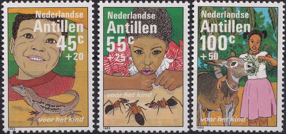 1983, Nizozemské Antily, 0500/0502, Příplatkové pro mládež: Děti a zvířata ✶✶