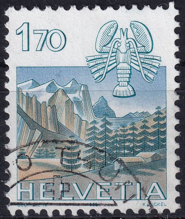 1983, Švýcarsko, 1242, Výplatní známka: Znamení zvěrokruhu a krajinky (II) - Rak, Wetterhorn ⊙