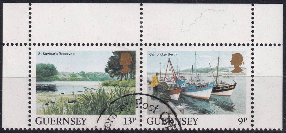 1984, Guernsey, 0290+292ASt, Výplatní známky: Pohledy na Guernsey - Cambridge Berth a Rezervace St. Saviour ⊙ o