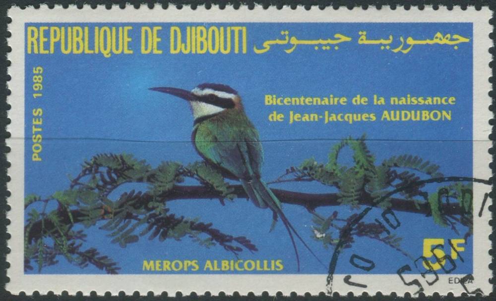 1985, Džibutsko, 0429, 200. výročí Johna Jamese Audobona: Merops albicollis ⊙