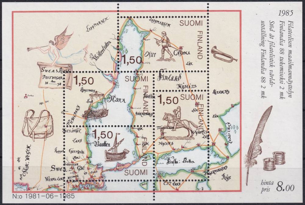 1985, Finsko, A01, Mezinárodní výstava poštovních známek FINLANDIA ´88, Helsinky (I): Poštovní přeprava v 17. století ✶✶