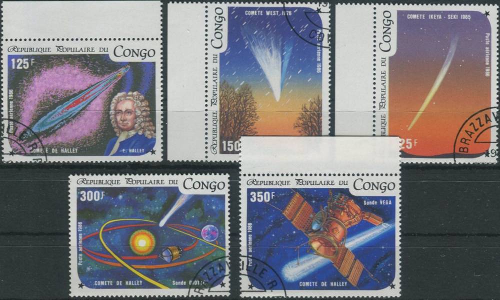1986, Kongo (Brazzaville), 1024/1028, Letecké známky: Hallyeova kometa ⊙