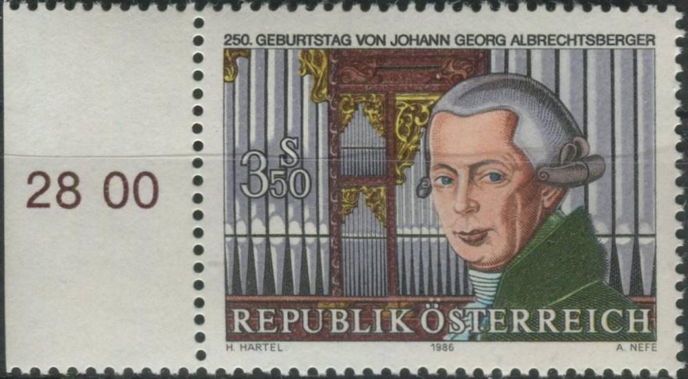 1986, Rakousko, 1839p, 250. výročí narození Johanna Georga Albrechtsbergera ∗∗