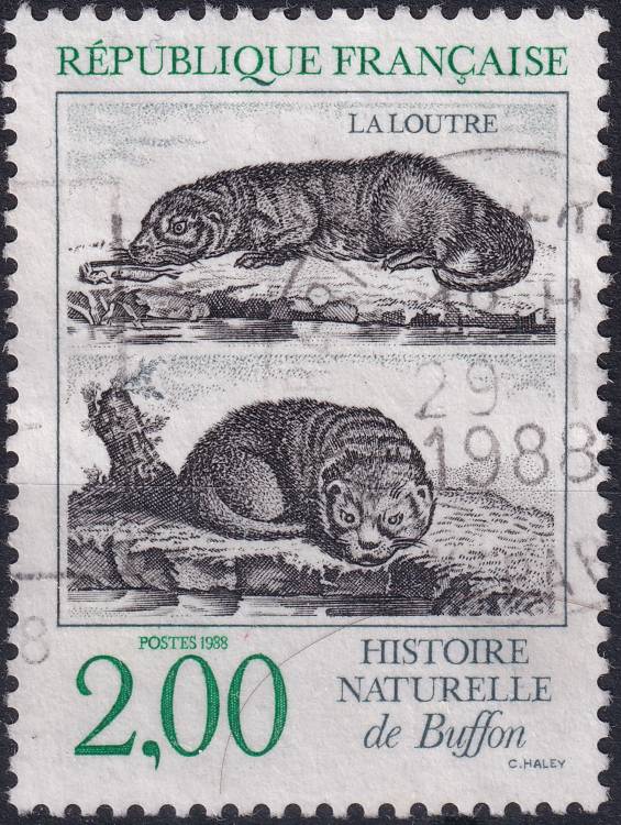1988, Francie, 2676, Kresby zvířat z díla "Historie přírody" od Louise Leclerca, hraběte z Buffonu (1707-1788), přírodovědce: Lutra lutra ⊙