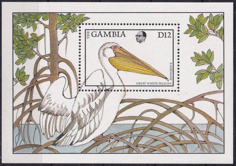 1988, Gambie, A0044, Zvířata a rostliny: Pelecanus onocrotalus ✶✶