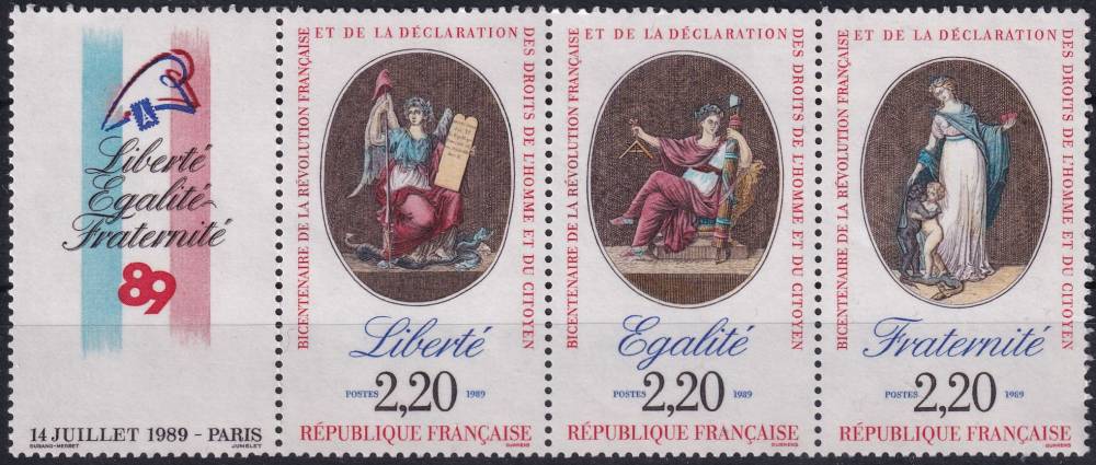 1989, Francie, 2708+2715+2720StKL, 200. výročí Francouzské revoluce: Vyhlášení lidských a občanských práv ✶✶