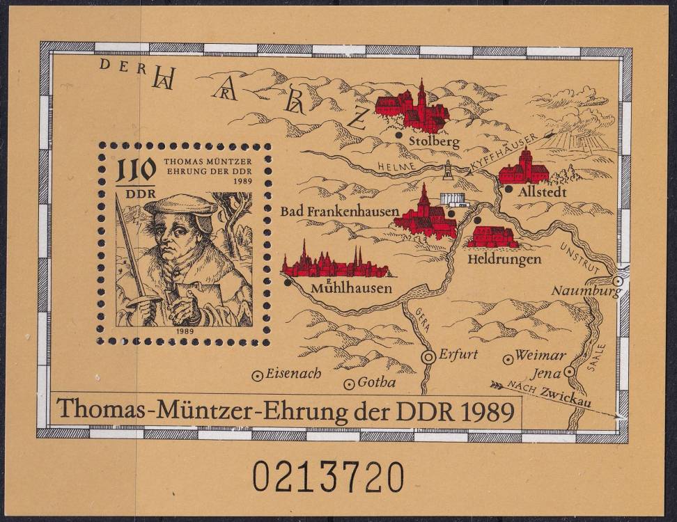 1989, NDR, A097, 500. výročí narození Thomase Müntzera, ✶✶