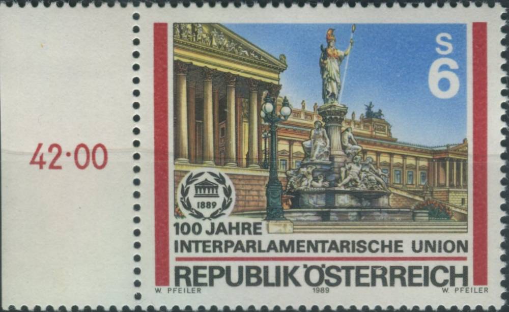 1989, Rakousko, 1964p, 100 let Meziparlamentní unie (IPU) ∗∗