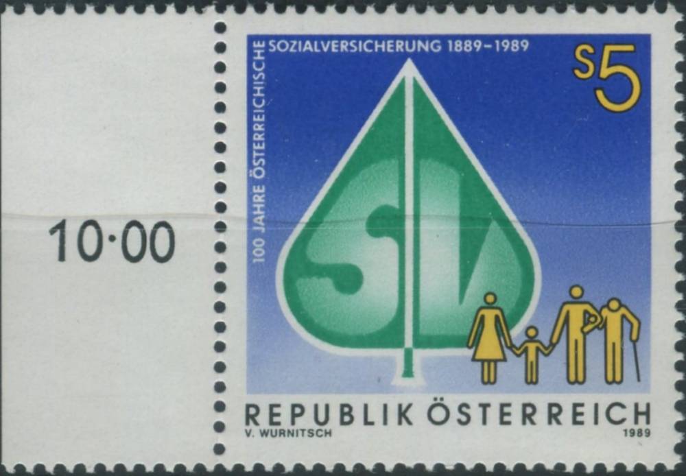 1989, Rakousko, 1965p, 100 let sociálního pojištění v Rakousku ∗∗