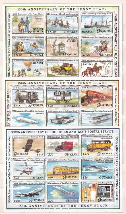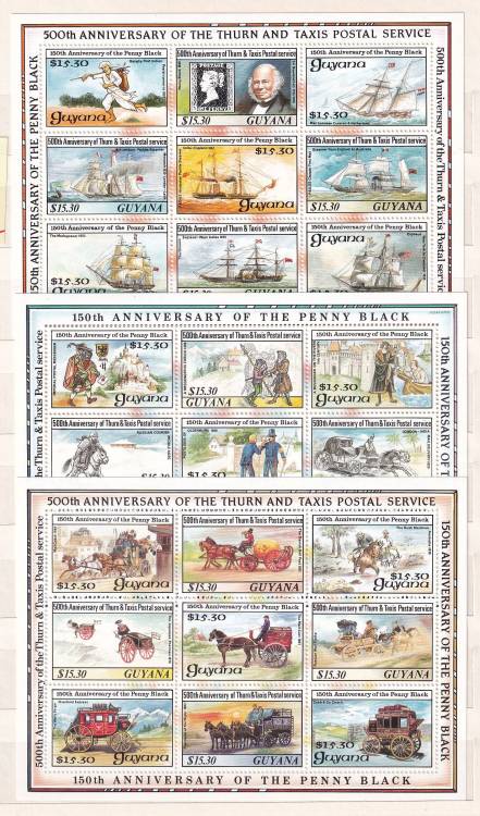 1990, Guayana, PL3099/3152, 500 let Thurn-Taxiské pošty; 150 let poštovní známky ✶✶
