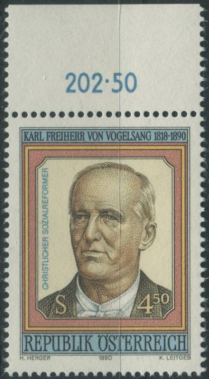 1990, Rakousko, 2008p, 100. výročí úmrtí Karla svobodného pána von Vogelsang ∗∗