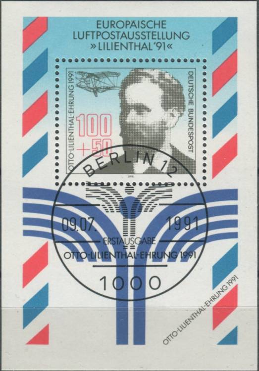 1991, Bundes, A024, Evropská výstava letecké pošty LILIENTHAL ´91, Drážďany; 100. výročí prvního letu Otto Lilienthala ⊙