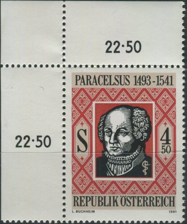 1991, Rakousko, 2038p, 450. výročí úmrtí Paracelsuse ∗∗ r